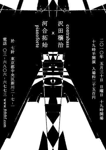 ★<河合拓始ピアノ・ソロ・コンサート「知覚と音楽」> 【日時】2010年7月22日(木)開場7:00pm/開演7:30pm 【曲目】 松平頼暁「ブレンディング」 平石博一「九十九折二番」 藤枝守「Begin at the beginning, end at the end, begin at the end, end at the beginning」 鈴木治行「同心円」 * トム・ジョンソン「An Hour for Piano」 【会場】 大塚「音楽堂 ano ano」http://www.music-anoano.com/ (東京都豊島区南大塚1-49-2 ハイデルムンド1F 03-6273-7024) (JR山手線「大塚」駅南口から歩5分、東京メトロ丸ノ内線「新大塚」駅から歩8分) 【入場料】予約2500円/当日2800円 【曲目紹介】 アメリカ生まれで現在はフランス在住の作曲家Tom Johnson(1939-)の「An Hour for Piano」(1971)は、題名の通り1時間きっかりのミニマル的音楽で、これをコンサート後半に演奏します。この曲には、作曲者の書いた「演奏を聴きながら読むプログラムノート」というのが付いており、ノート自体が反復的だったり、聴きながら読むことについてさまざまに云々してあって、音楽とノートと両方でひとつの作品と言ってよいと思います。もちろんコンサート当日には、その日本語訳文と英語原文をお配りします。 コンサート前半は、四人の日本人作曲家の作品を演奏します(順序は未定)。松平頼暁さん(1931-)の「ブレンディング Blending」(1984)は、古今の欧米の作曲家の、ひとりの作品のリズムに、別のひとりの作品のピッチを当てはめて(掛け合わせて=ブレンド)作った断片(例えばケージ×ベートーベンとかワグナー×ブーレーズとか)が次々と連続していく作品。平石博一さん(1948-)の「九十九折二番」(1988)は、あるモード(音列)による4つの小品からなる音楽で、時として雅楽的な佇まいも感じます。藤枝守さん(1955-)の「Begin at the beginning, end at the end, begin at the end, end at the beginning」(1982)は、J.S.バッハの「音楽の捧げ物」の素材にある操作を加えていくことで織りなされる作品。鈴木治行さん(1962-)の「同心円」(2007)は、ピアノの中央のドの音を境にして点対称の関係にある音の列や和音を作り、それらを作曲者一流の反復・断片化・異化の手法で構成してゆく音楽です。 ジョンソンの作品があるので、コンサートタイトルを「知覚と音楽」としましたが、知覚でなく、認識や意味と言ってもよいのかもしれません。それは前半の作品にも大いに通底するところがあります。 ぜひ知的にして音楽的な刺激を受けにいらしてください。皆さまのご来場をお待ちしています。 PR 昨日(日曜)は七針で沢田穣治さんとのデュオでした。 私としては普段演奏回数の少ないタイプの楽曲を中心に、演奏しました。 来てくださった方々、どうもありがとうございます。 以下、セットリストです。 第一部 1. エレジー(作曲:河合拓始 2005) 2. 僕の心の風景(作曲:沢田穣治) 3. 即興演奏 =沢田ソロ 4. PRAYER(作曲:河合拓始 1994) 5. ARI-CHAN(作曲:沢田穣治) 6. トルソー(作曲:河合拓始 1998) 第二部 1. 冥王頌曲(作曲:河合拓始 2007)=河合ソロ 2. 扉の冬(作曲:沢田穣治) 3. フラワーズ(作曲:河合拓始 2007) 4. すすめシュパツィーレン(作曲:河合拓始 2010) 5. 即興演奏 6. 悲しみのミロンガ(作曲:河合拓始 1998) ソロを一曲づつ以外は、すべてピアノ+コントラバスのデュオ。 第二部の4曲目は、今回の新曲でした。 沢田さんと久しぶりでしたが、またこのデュオでもやると思います。